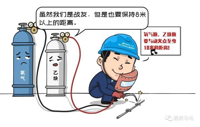 老渡:氧氣瓶、乙炔瓶要與動火點保持至少10米的距離,氧氣瓶與乙炔瓶的距離應(yīng)保持8米以上。