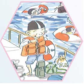 若水進入船內,要盡快將水排出。 跳水時,要迎著風向,雙臂交疊在胸前,雙手捂住口鼻,壓住救生衣,眼睛向前看,雙腿并攏直伸,腳先下水。