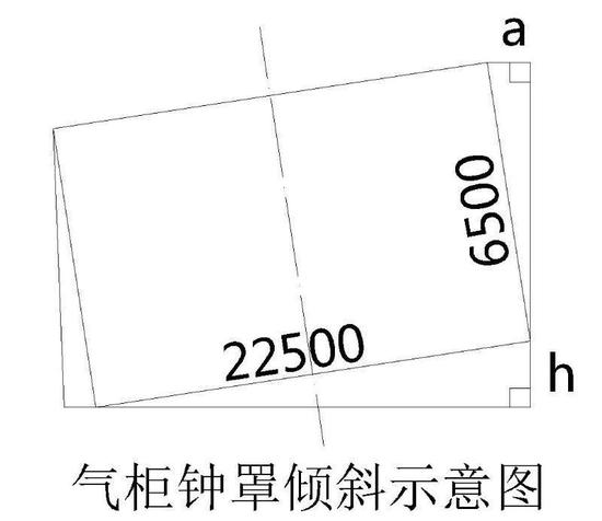 如上圖所示,氣柜鐘罩對應的兩個外導輪與導軌距離差值為a,環形水封減薄量為h,依據相似三角形原理: