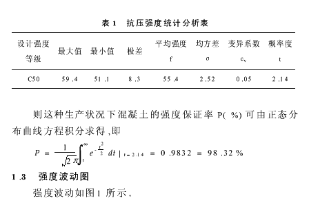 ????? 專用線高架橋箱梁共送檢混凝土試塊24組,根據其抗壓強度測試結果,用數理方法進行統計分析,結果如表1所示。