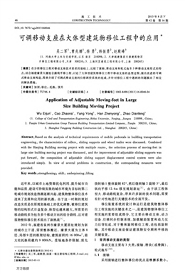 文檔作者: 吳二軍1,曹兆娜1,楊勇2,韓振勇2,趙殿峰3        文檔來源: 1.河海大學土木與交通學院 2.天津城建集團天演建筑物頂 升移位工程有限公司,天津300210;3.上海同罡建筑工程有限公司