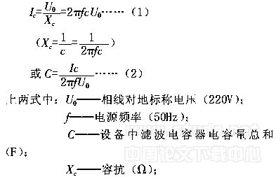 圖2中電容器的一端是通過設(shè)備外殼和PE線接地的,其對地電容電流為: