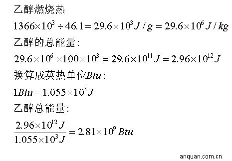 (2)將查到的燃燒熱換算成:J/kg,乘以物質數量(kg),求出該物質的總能量。現以第二種方法進行乙醇總能量計算。