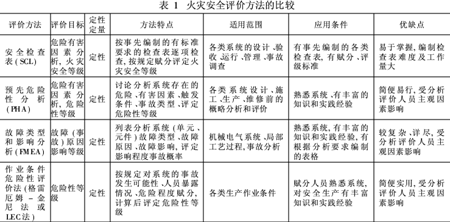 7 火災安全評價方法比較(見表1)