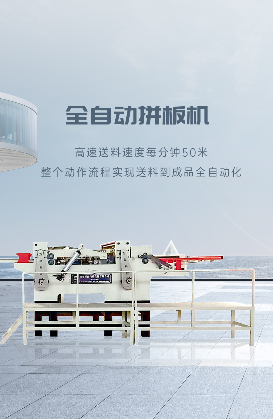 山東萬磊電氣設備科技有限公司是一家集設計研發、生產制造、銷售服務為一體的綜合型制造企業。公司位于臨沂市羅莊區美鑫工業園,擁有現代化廠房,一流的生立檢測設備,一個具有創新意識的管理團隊和一支高素質的員工隊伍。臨沂萬磊機械有限公司在臺灣同行業生產的機型基礎上結合我國木業廠商的實用性,所精心設計的新一代電腦變頻全自動拼板機,適用于 1.2-6mm 中板拼接,本機擁有高速送料速度每分鐘 50 米,整個動作流程實現送料到成品全自動化。