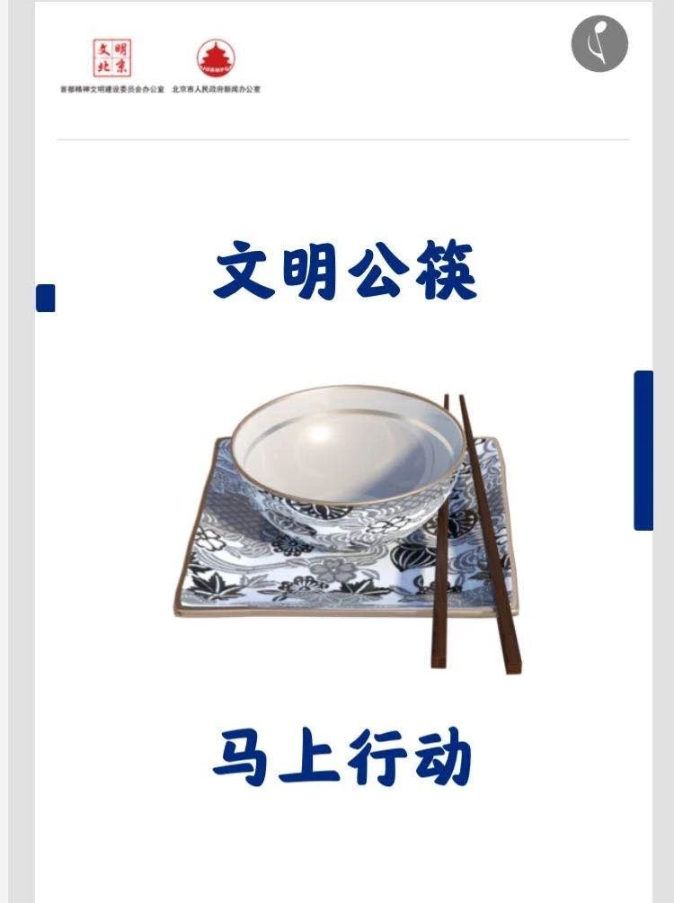 “公筷公勺擺上桌,分餐進食好處多”,首都文明辦近日發布“公筷行動公約”,倡導使用公筷、公勺,提高衛生意識,形成公眾共識,養成健康、文明的生活方式。公筷行動,等你來加入!