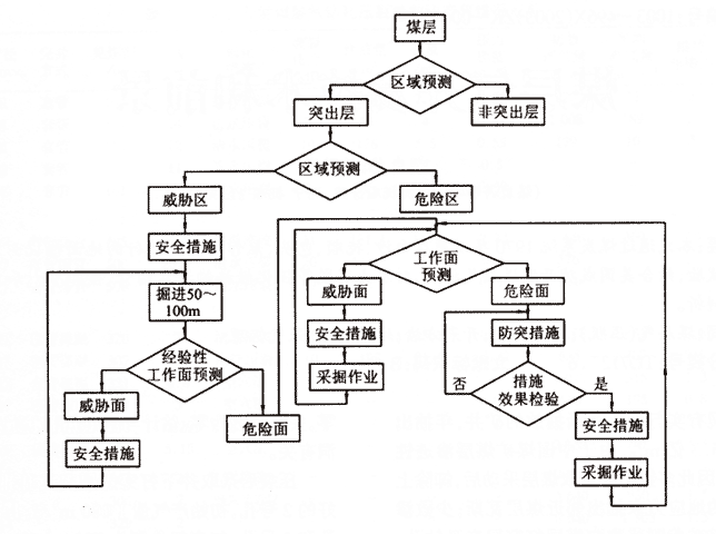 綜合防突措施的第二個(gè)環(huán)節(jié)是防突措施。即在預(yù)測(cè)有突出危險(xiǎn)的地段,采取防止突出措施,以達(dá)到預(yù)防突出的發(fā)生。
