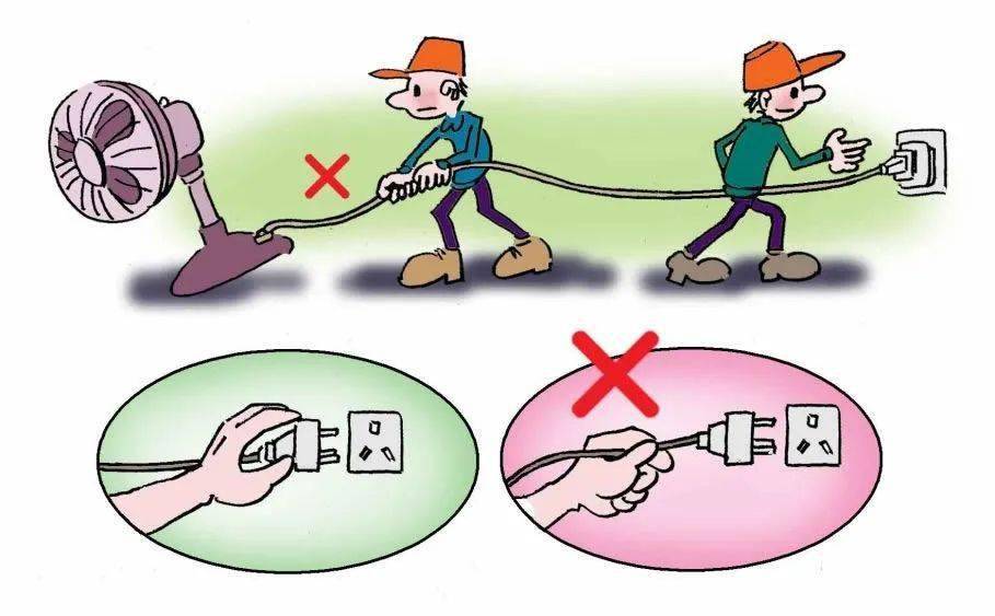 ★ 在移動(dòng)電氣設(shè)備如電風(fēng)扇等時(shí),不要拖拽電線。在拔下電氣設(shè)備插頭時(shí),應(yīng)捏住插頭拔下,而不應(yīng)扯動(dòng)電線拔下。