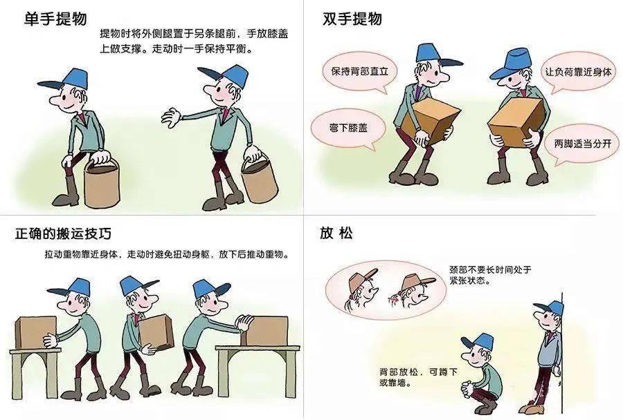 ★在辦公室里搬運(yùn)不當(dāng),可能會(huì)造成背部受傷。遵守下圖所示的簡易的搬運(yùn)規(guī)則,可以防止受傷。