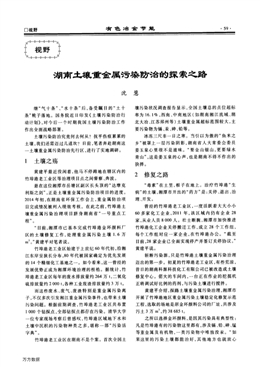 湖南土壤重金屬污染防治的探索之路