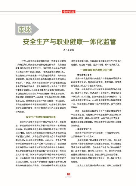 我國實行安全生產與職業健康一體化監管可行性,主要體現在以下三個方面。