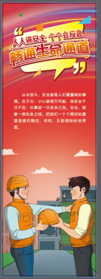 安全標(biāo)語(yǔ),通過(guò)朗朗上口的文字和逗趣的漫畫(huà),闡述了企事業(yè)單位員工在生產(chǎn)工作及生活中應(yīng)該注意的各項(xiàng)安全事項(xiàng),能增強(qiáng)員工的安全意識(shí)。標(biāo)語(yǔ)圖文并茂,色彩鮮艷,使用便捷,能很好起到宣傳安全文化的作用。同時(shí)可以美化環(huán)境,適合張貼在宣傳欄、柱子、辦公室、廠房車間、會(huì)議室、會(huì)客廳、培訓(xùn)教室、倉(cāng)庫(kù)、過(guò)道走廊等場(chǎng)所。