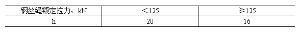 6.2.3 卷揚機鋼絲繩經過處所用滑輪的最小名義直徑與鋼絲繩直徑的比值h應符合表4的規定。