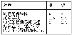 低壓電力設(shè)備的銅或鋁接地線的最小截面(平方毫米) 表6.0.4
