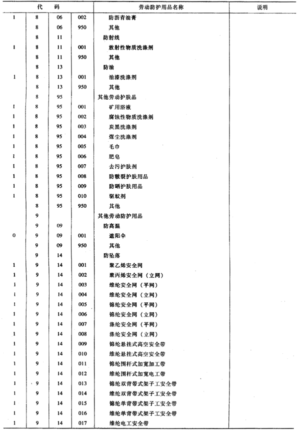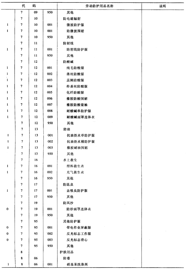 3) 與商業系統特種勞動防護用品經營管理品種范圍的分類相協調。