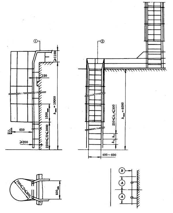休息平臺的寬度至少應為700mm,位于梯子附近空檔中的休息平臺部分安裝有門和扶手。它們的尺寸要設計成滿足進行緊急干預的要求。