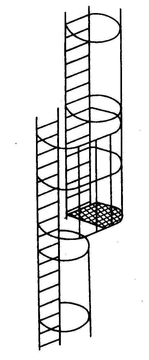 裝備有所需保護設施的一塊區域,設計用于使梯子的使用者在攀登上去或下到地面之前可進行休息。這些休息平臺裝備有門,并且尺寸應定得允許采取緊急干預措施(見圖1)。