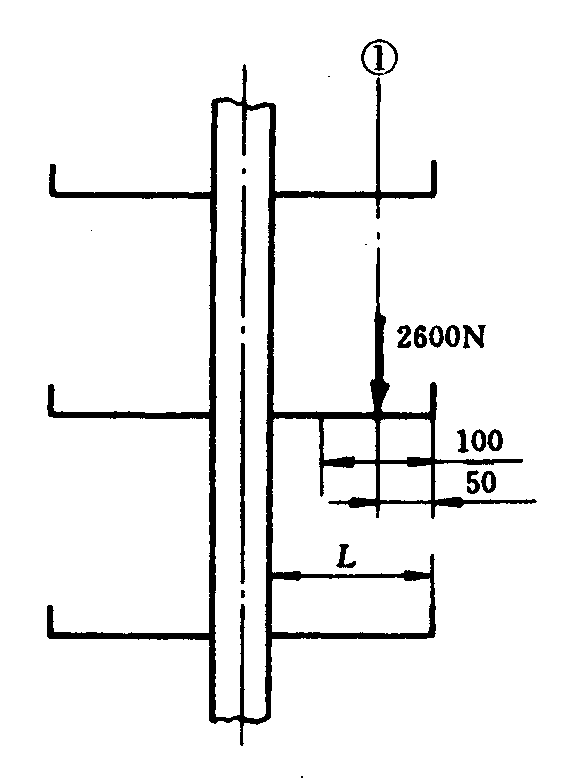 雙立柱固定式直梯支座的強度應考慮按每立柱3000N的力計算,沿立柱中心線的方向作用(見圖17)。