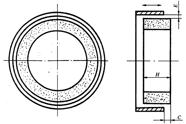 3.3.2 環帶式砂輪防護罩內壁與砂輪圓周表面之間的間距應盡可能小,推薦小于15mm(見圖6中E)。