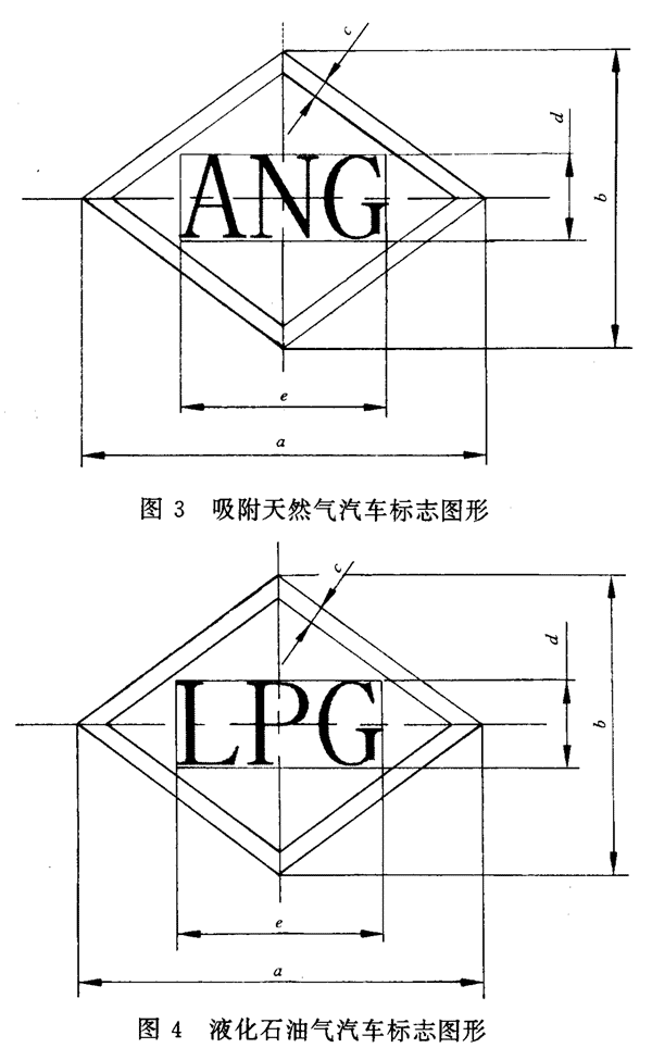 天然氣汽車識別標志的圖形和尺寸采用了ECE67號法規《關于其動力裝置使用液化石油氣的機動車輛專用裝置批準的統一規定》附件16中對標志的有關規定;液化石油氣汽車識別標志的圖形、尺寸和顏色,非等效采用了ECE67號法規附件16中對標志的有關規定。