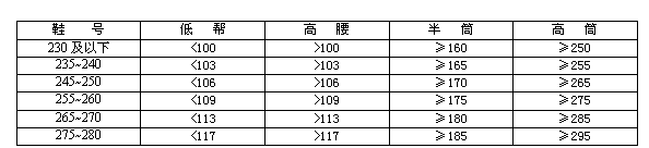 4.1.3.1鞋幫尺寸 尺寸(h)應(yīng)滿足表1最低要求。
