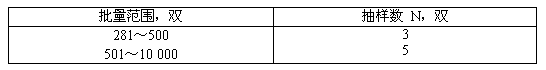 g) 型式檢驗(yàn)的樣品應(yīng)從合格的成品庫中進(jìn)行抽取,樣品數(shù)為3~5雙以滿足檢驗(yàn)項(xiàng)目要求為原則。