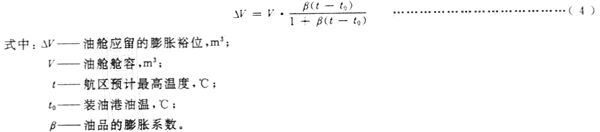 8.8 滿載裝油應保持每艙有足夠的膨脹裕位,其計算如式(4):