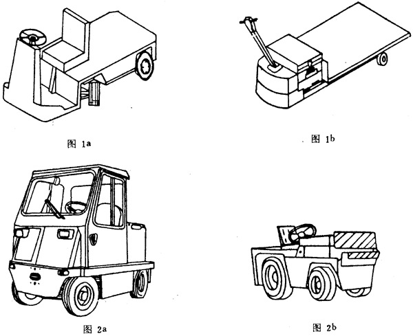 車輛后端裝有牽引連接裝置,用來在地面上牽引其他車輛的工業車輛稱為牽引車(圖2a);車輛前端裝有緩沖推頂板,用來在地面上作推頂其他車輛的工業車輛稱為推頂車(圖2b)。