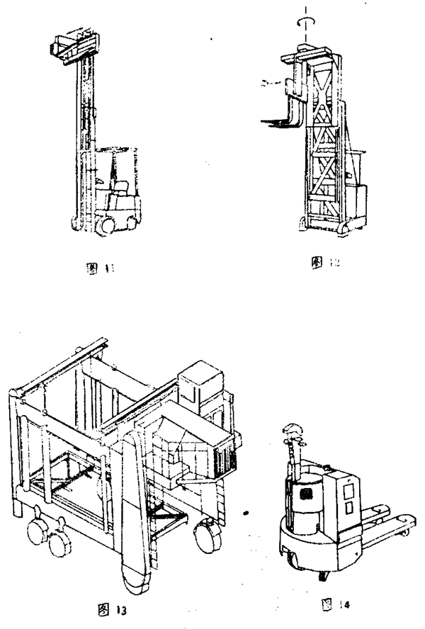 具有平臺、貨叉或起升裝置,能把貨物起升到滿足運行的高度(揀選車除外),進行搬運作業的車輛。