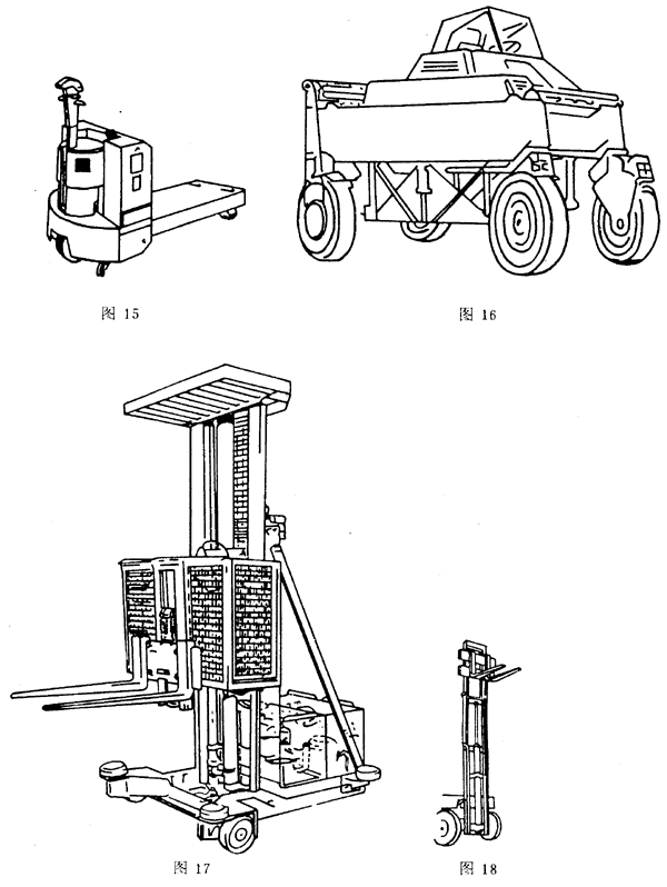裝有平臺或載貨架的車輛(步行式或乘駕式)(圖15)。