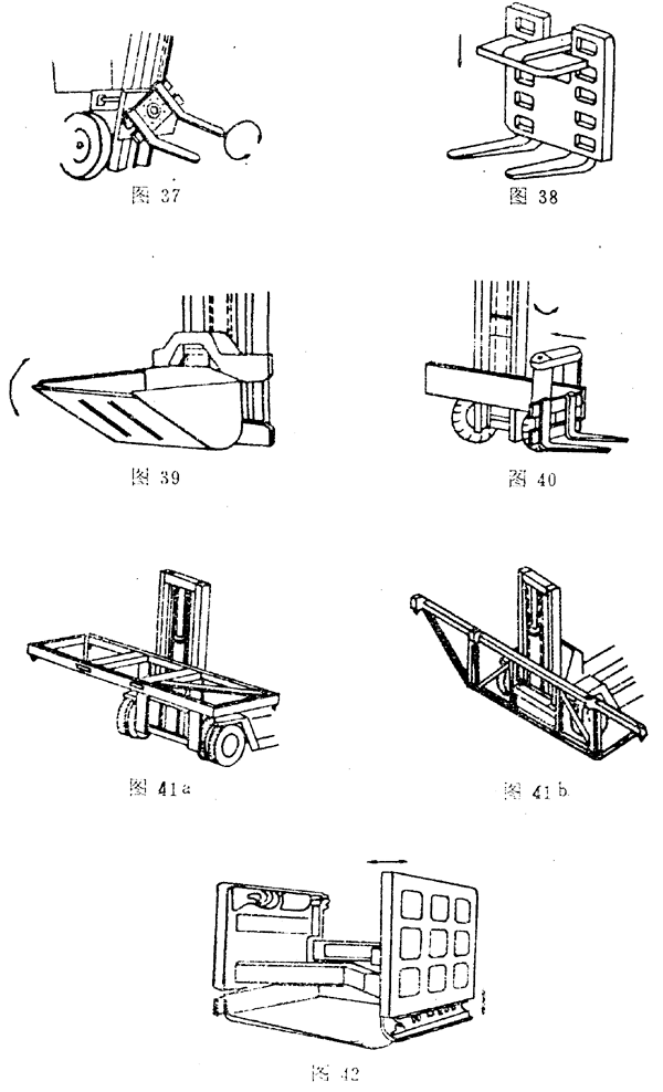 可以在叉車前方及左右兩側裝卸貨物的屬具(圖40)。