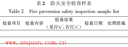 List)進行獲取,它是一種最基礎的系統安全定性分析法。 進行安全檢查前,需要把系統分為若干層次,每一層次又分為若干單元。根據有關的安全規范、規定、標準和經驗等,把要檢查的項目、要點按一定順序列成表格,作為檢查的依據。根據檢查隧道火災的對象和目的的不同,火災檢查表可分為裝運易燃易爆物品車輛防火安全檢查表、隧道消防報警設施安全檢查表、日常安全檢查表、火災隱患整改安全檢查表等,樣表如表2