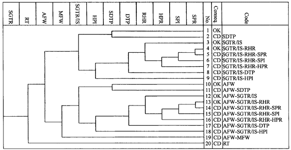 在建立事件樹時,需要確定其中的題頭事件。一般說來,題頭事件的確定對事件樹的繁簡有很大的影響。通常可以把作為一個整體的某個前沿系統的一個響應作為一個題頭。圖2是秦山核電廠PSA蒸汽傳熱管斷裂(SGTR)事件樹圖。